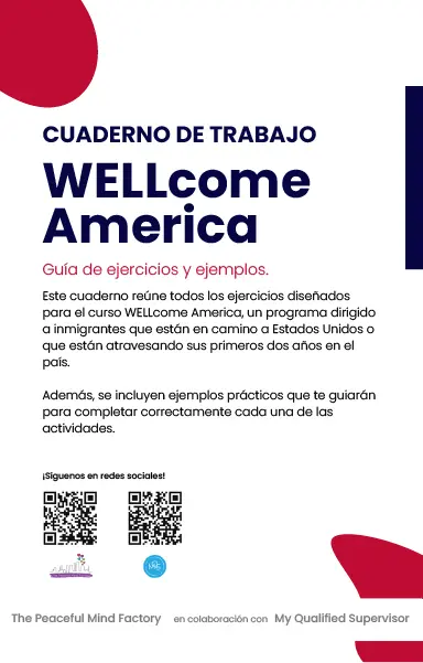 Herramientas prácticas y emocionales para adaptarte a tu nueva vida en EE. UU. Incluye videos, workbook con ejemplos completados y cuaderno en blanco para reflexionar. Ayuda a manejar el estrés, mejorar tu salud mental, fortalecer tu identidad y sentirte acompañado en el proceso migratorio.